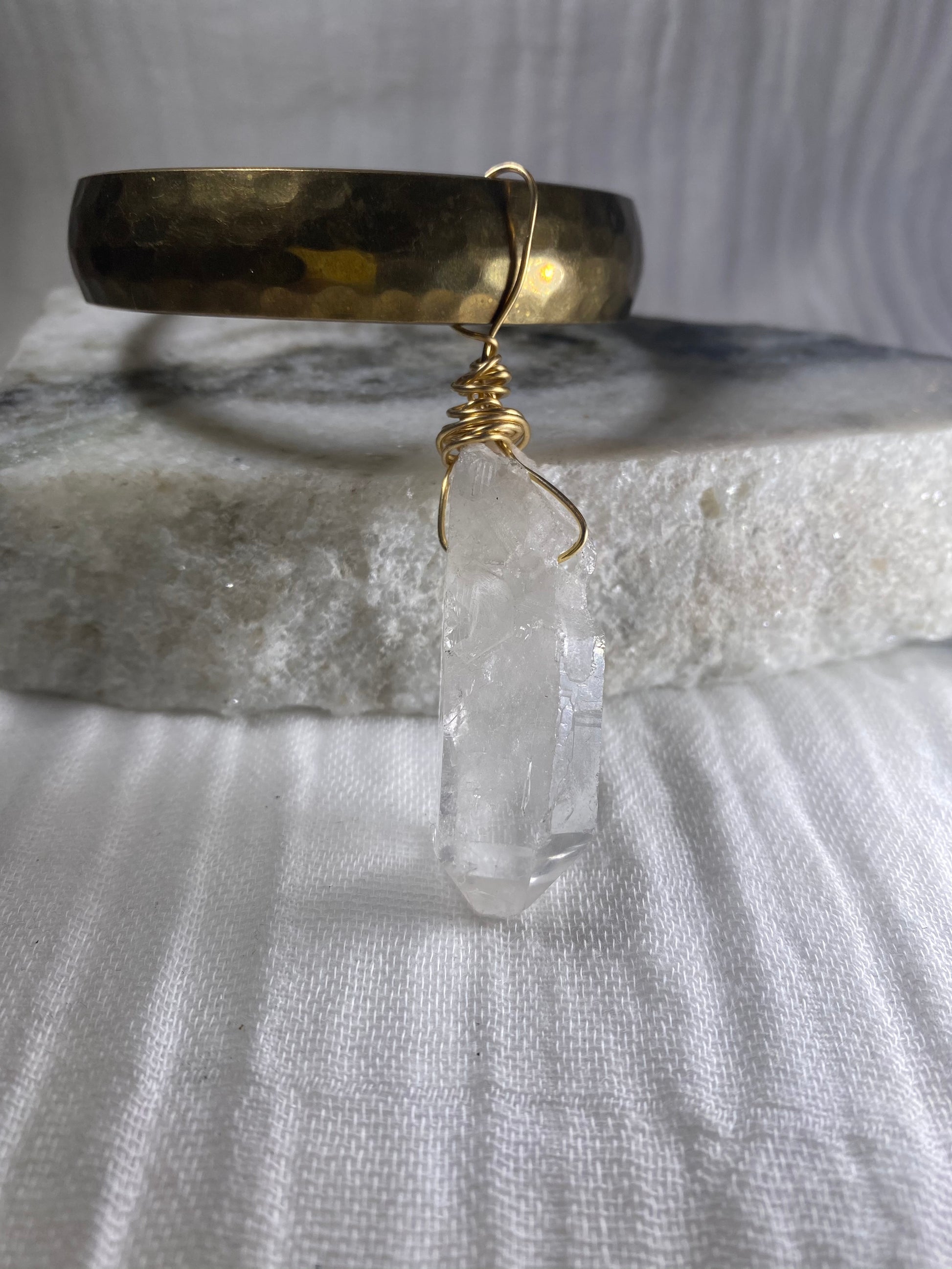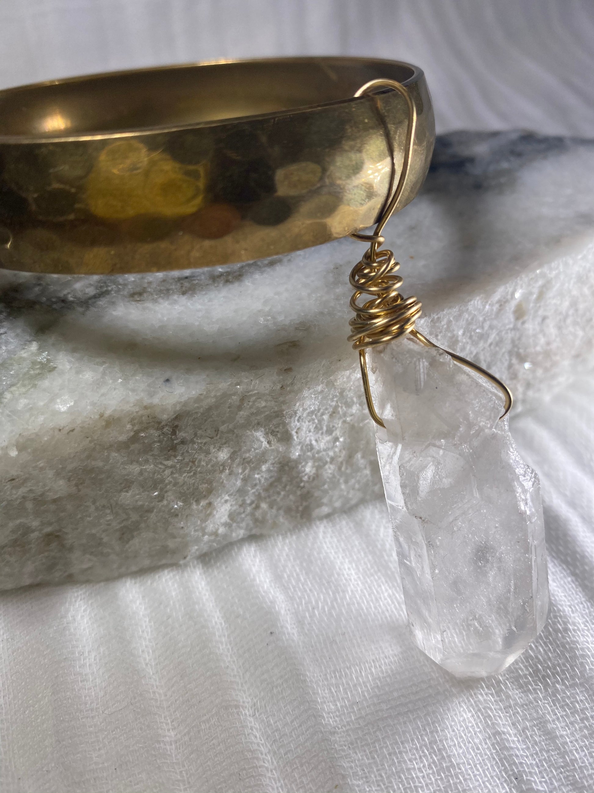 Crown Chakra Soul Chain Bangle w Clear Quartz Crystal Dangle Bracelet