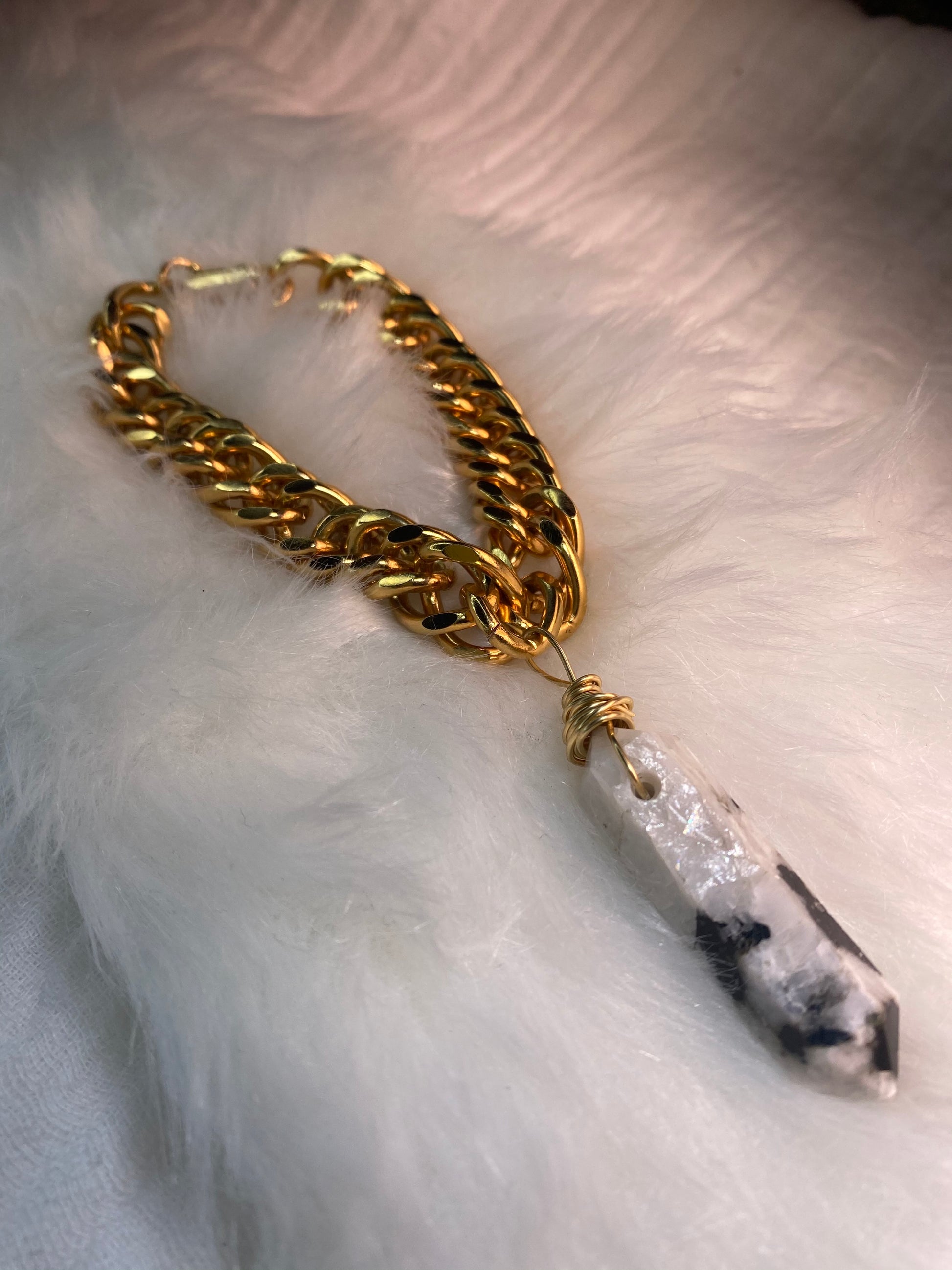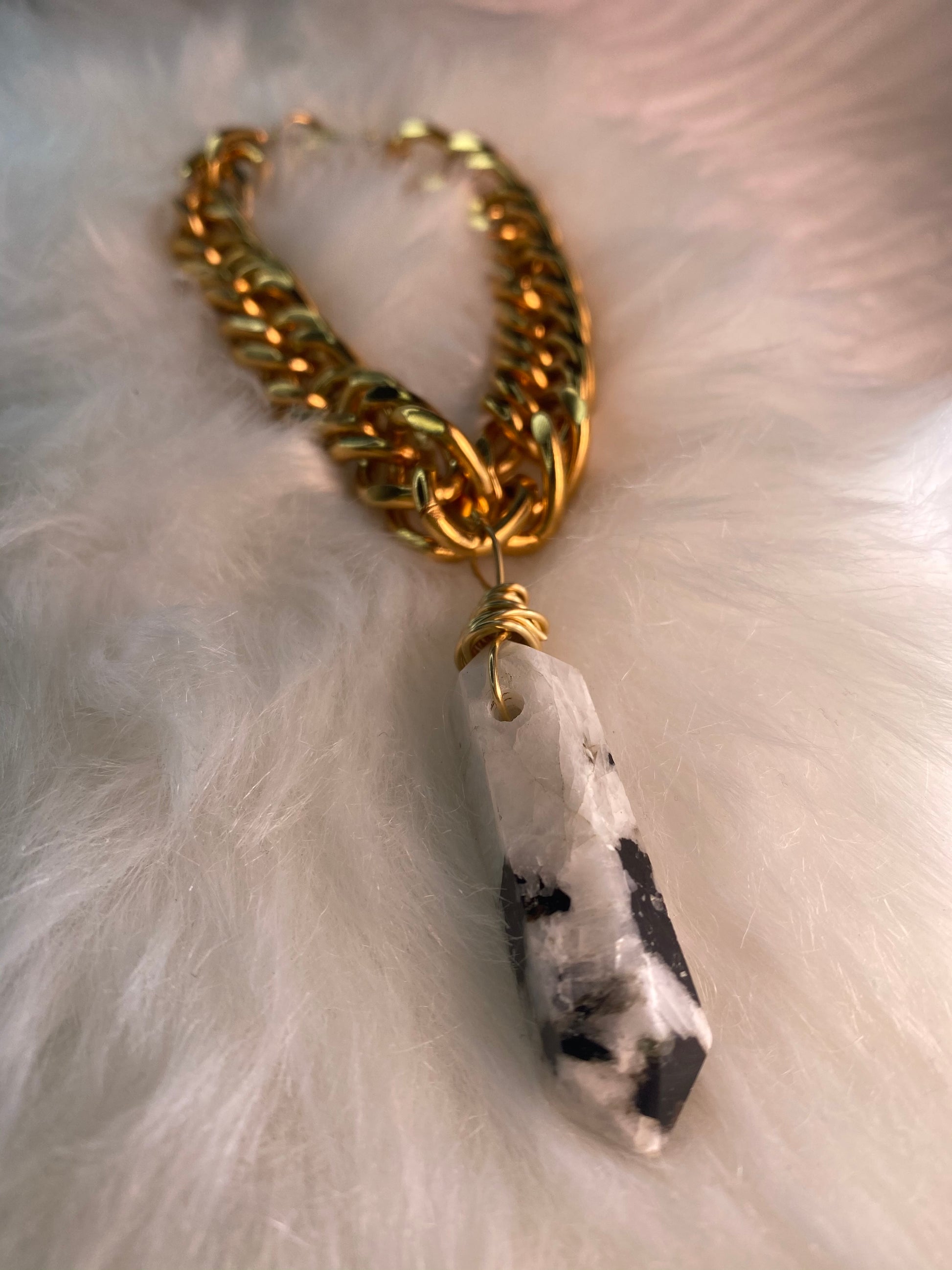 The chains and crystals are sourced from around the planet. One of a kind goodness, created with love and positivity! Rainbow creates small and meaningful curations driven by the planets and Moon cycle. Collect them and cherish them!